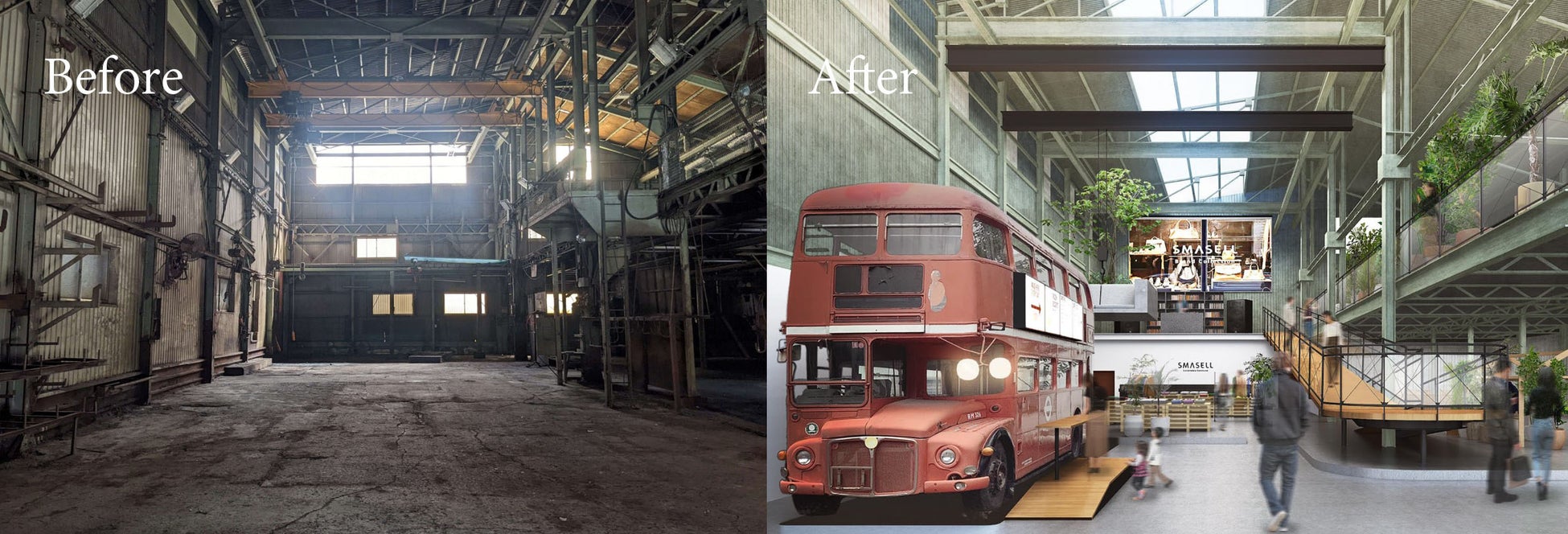 リノベーション前の廃工場 リノベーション後(完成予想図)