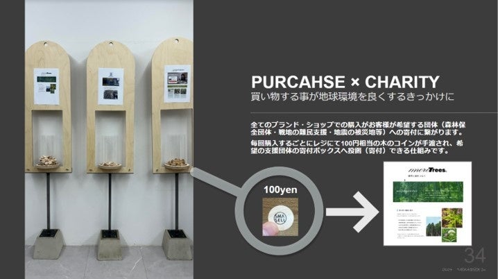 毎回購入するごとに希望する団体(森林保全団体・戦地の難民支援・地震の被災地等)に100円を寄付でき
